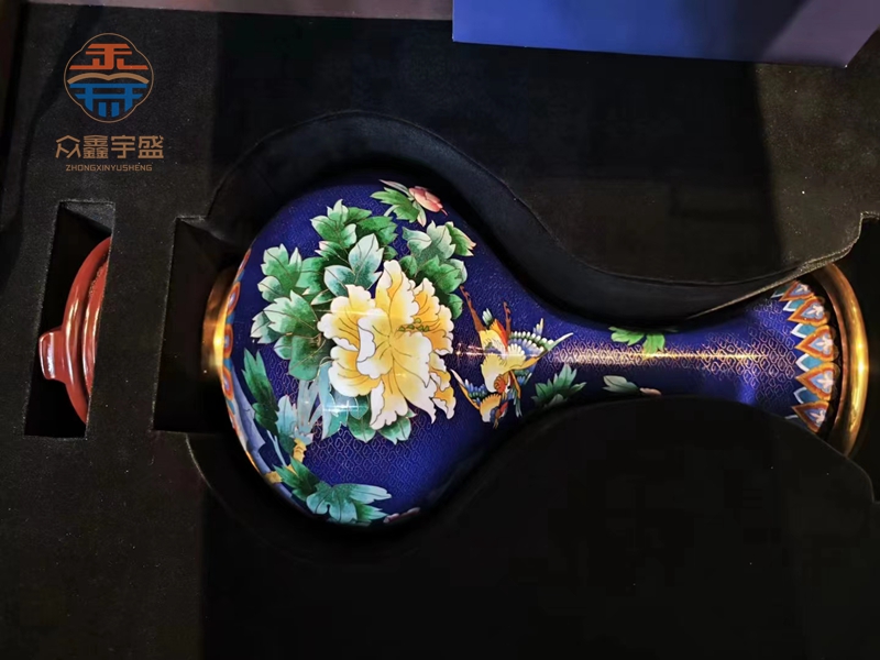 【藏品名称】:景泰蓝花开富贵瓶 【藏品创作】:张向东