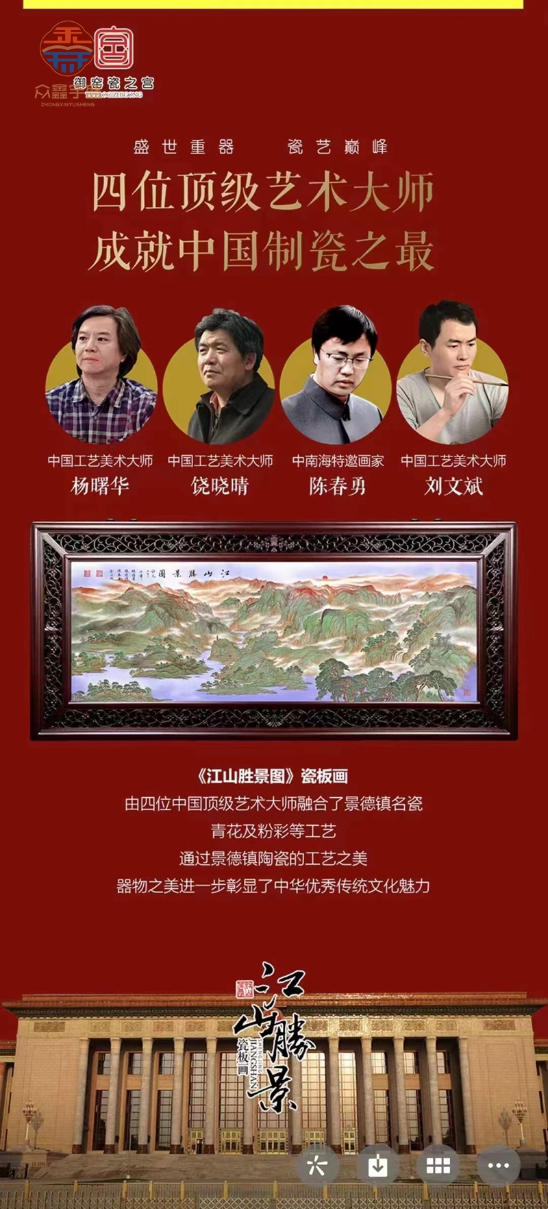 杨曙华饶晓睛陈春勇刘文斌 江山胜景图瓷板画规格: 裸板:长约113厘米*宽约40厘米,
