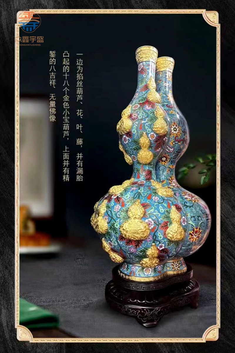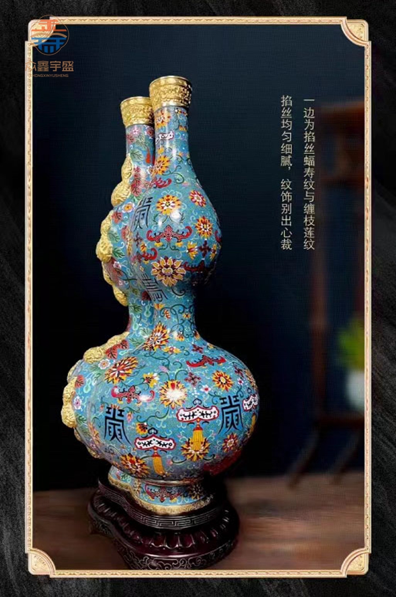 | 刘永森大师景泰蓝《福寿纹八吉祥双葫芦联瓶》 | |||