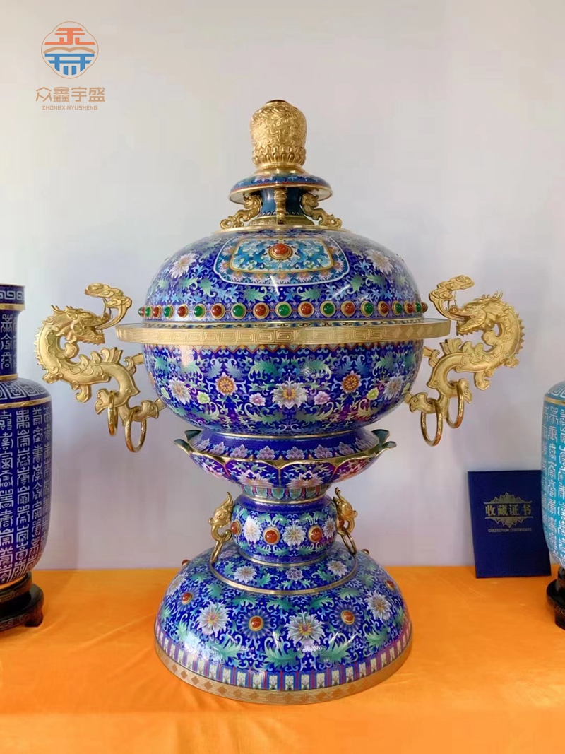 【藏品名称】:丁明鸿景泰蓝《祥龙聚瑞》 【藏品规格】:高约88cm 【创作大师】:丁明鸿