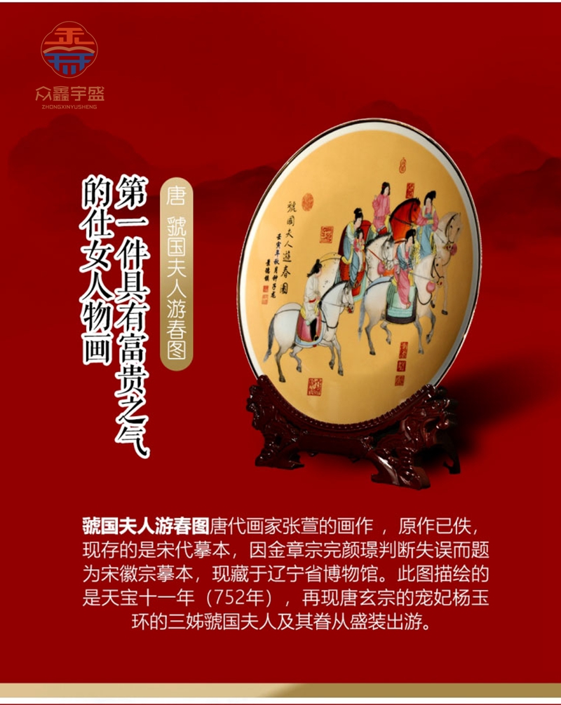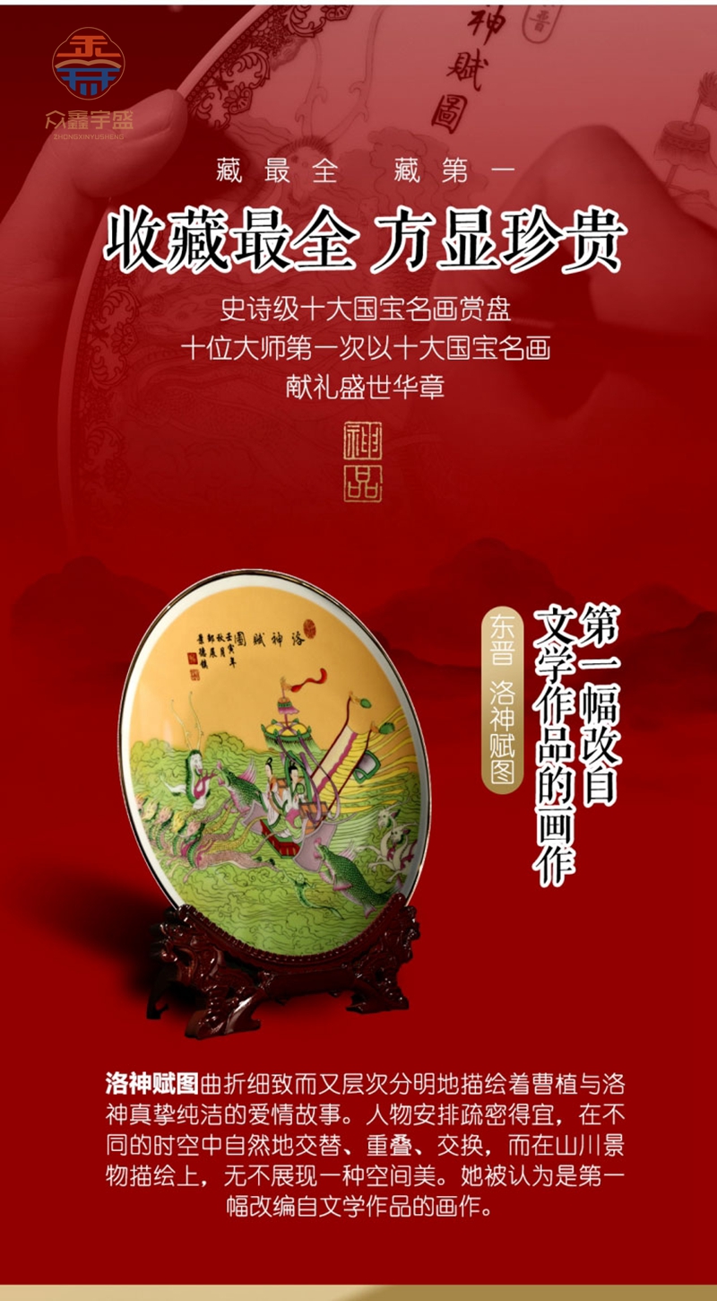 【藏品名称】:中国十大传世名画 【藏品规格】:直径26cm 【藏品创作】:吴红星、石红春、陈燕志、欧阳国旦、钟子龙、邹展、汪敏、吴景存、李彩昌、段干华 【藏品图案】:五牛图、韩熙载夜宴图、千里江山图汉宫春晓图、百骏图、步图、魏国夫人游春图洛神赋图、清明上河图、富春山居图