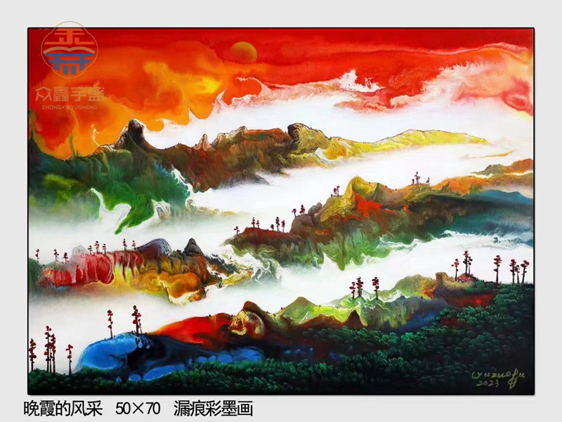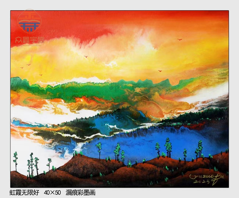 余作赋老师用三十年时间,完成了他的“漏痕画派”的三个绘画体系,即:漏痕水墨、漏痕胶墨和漏痕彩墨。做到了让色彩代替水墨的伟大创举,余作赋的漏痕系列作品是综合了佛学.玄学.周易等文化的作品,是综合了西方绘画与中国画之精髓,诠释了宇宙与自然之美。