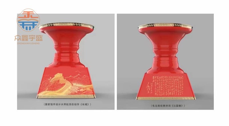 《红耀东方·中国金尊》一改传统陶瓷创作思路,将钞券设计、中国红釉、纯金彩饰、立体光影雕塑瓷四大技艺历史性融于一器。它不仅是一款伟人立体光影雕塑瓷,也是钱币大师与陶瓷大师跨界联袂创作的伟人珍瓷、更是一款一经面世便入藏数家红色革命圣地的红色官窑瓷!