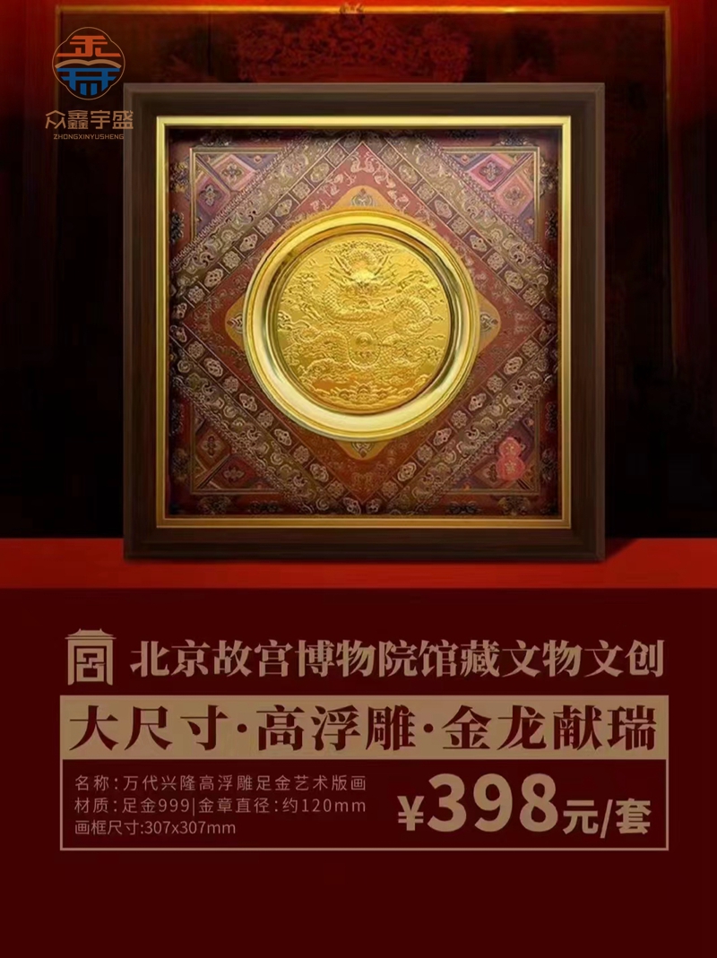 名称:万代兴隆高浮雕足金艺术版画 材质:足金999|金章直径:约120mm