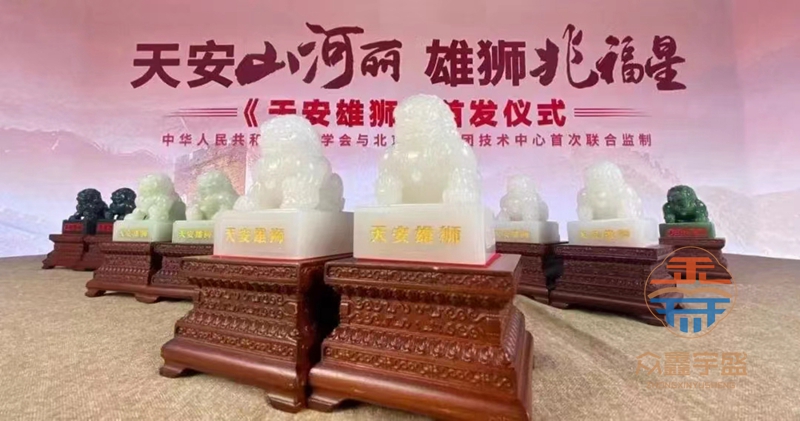 《天安雄狮》由中国工艺美术大师吴元全、设计大师冯超、玉雕大师仵孟超、徐瑞卿四大名家首次联袂创作设计,不仅汇聚非遗玉雕技艺之精髓,是一笔珍贵的历史文化遗产,更是一件集中国玉雕艺术之大美精品!