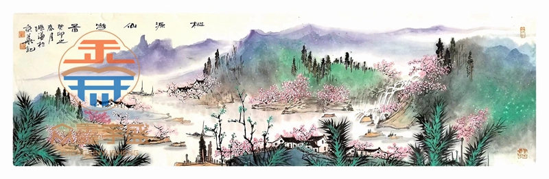 中美协会员张谦精品山水《泰岳朝晖》97×30厘米 |