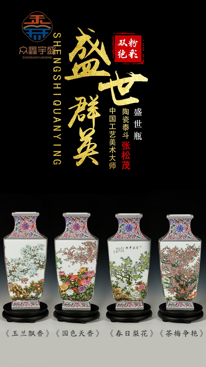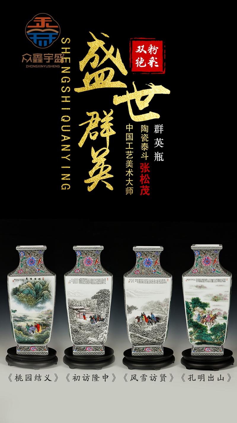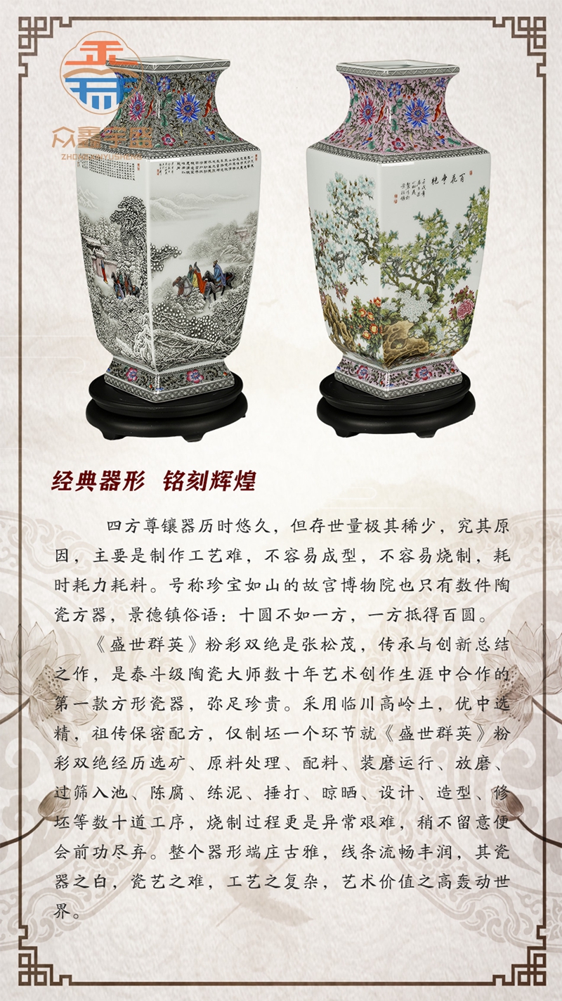 【藏品名称】:《盛世群英》粉彩双绝 【创作大师】:张松茂 【藏品工艺】:重工粉彩
