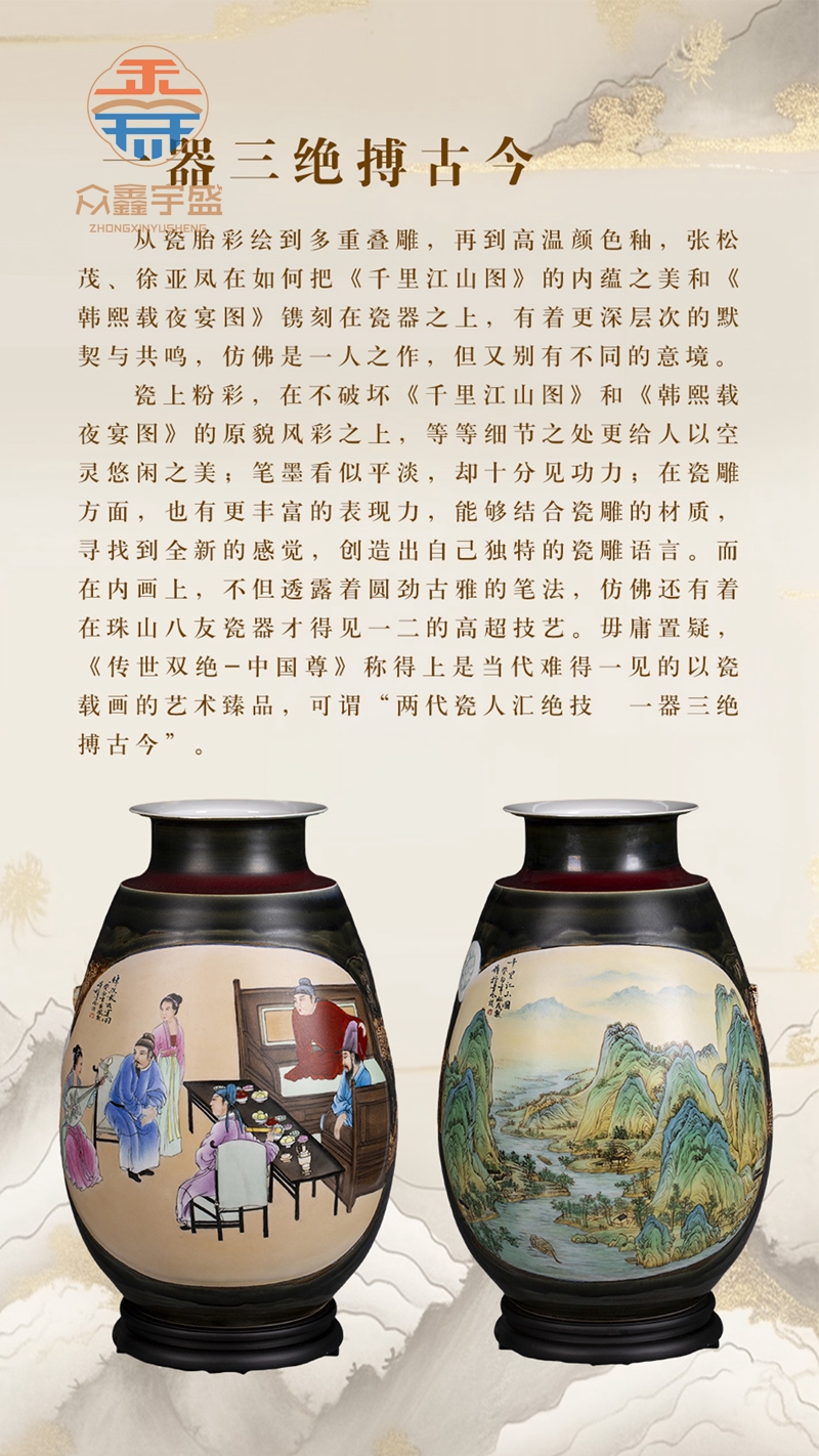 | 张松茂、徐亚凤大师创作 传世双绝-中国尊 重工粉彩雕刻瓷 | |||