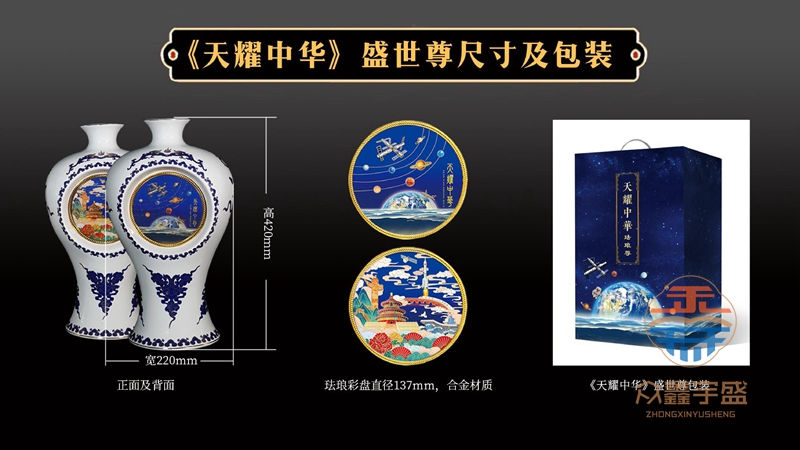 《天耀中华》盛世尊由100岁巨匠王锡良领衔开创新地创作出,当代陶瓷艺术史上的开山立派之举,述唐代的开山立派之作《唐三彩》宋代的开山立派之作《五大官窑、八大名窑》元代的开山立派之作《元青花》,明代的开山立派之作《釉下斗彩》,清代的开山立派之作《重工粉彩》,今天百岁巨匠王锡良大师为三十年,五十年后的传承创造出新的陶瓷艺术气息《青花珐琅异形瓷器》经典之作。