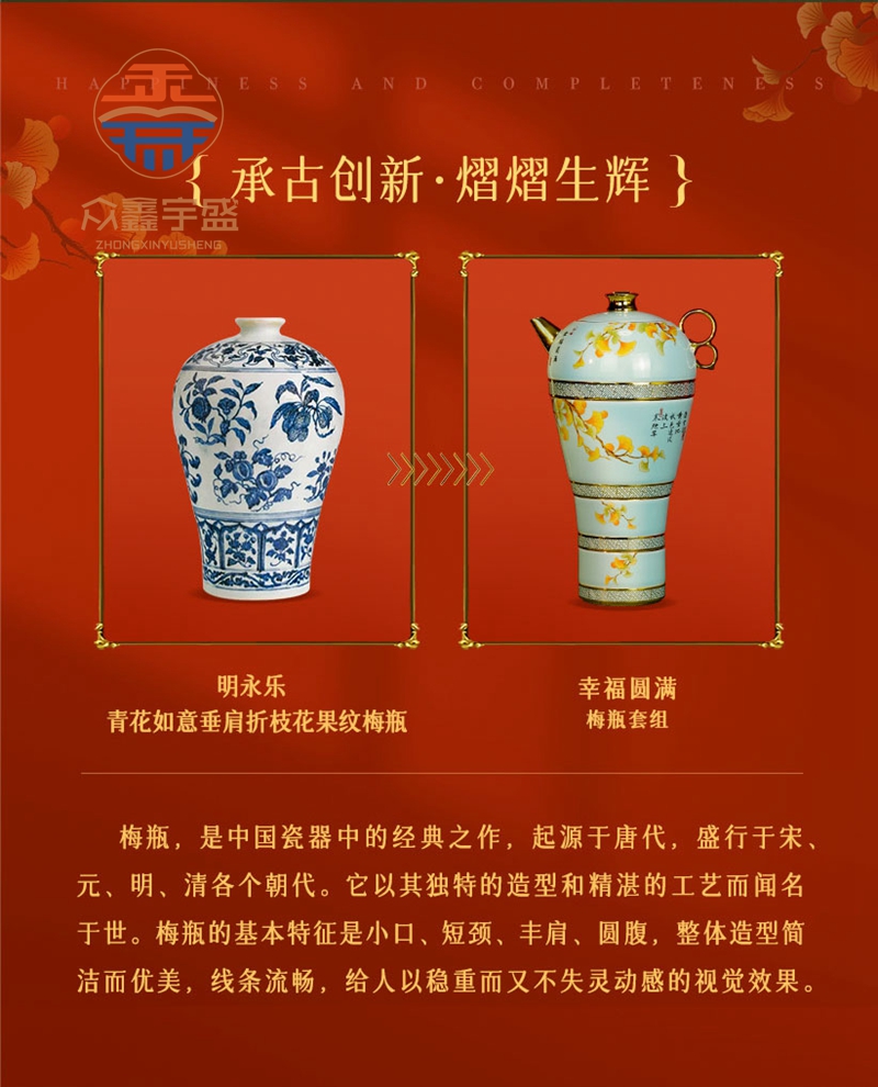 刘永森同心同梦 幸福圆满梅瓶套装 金丝珐琅与陶瓷珐琅创新结合