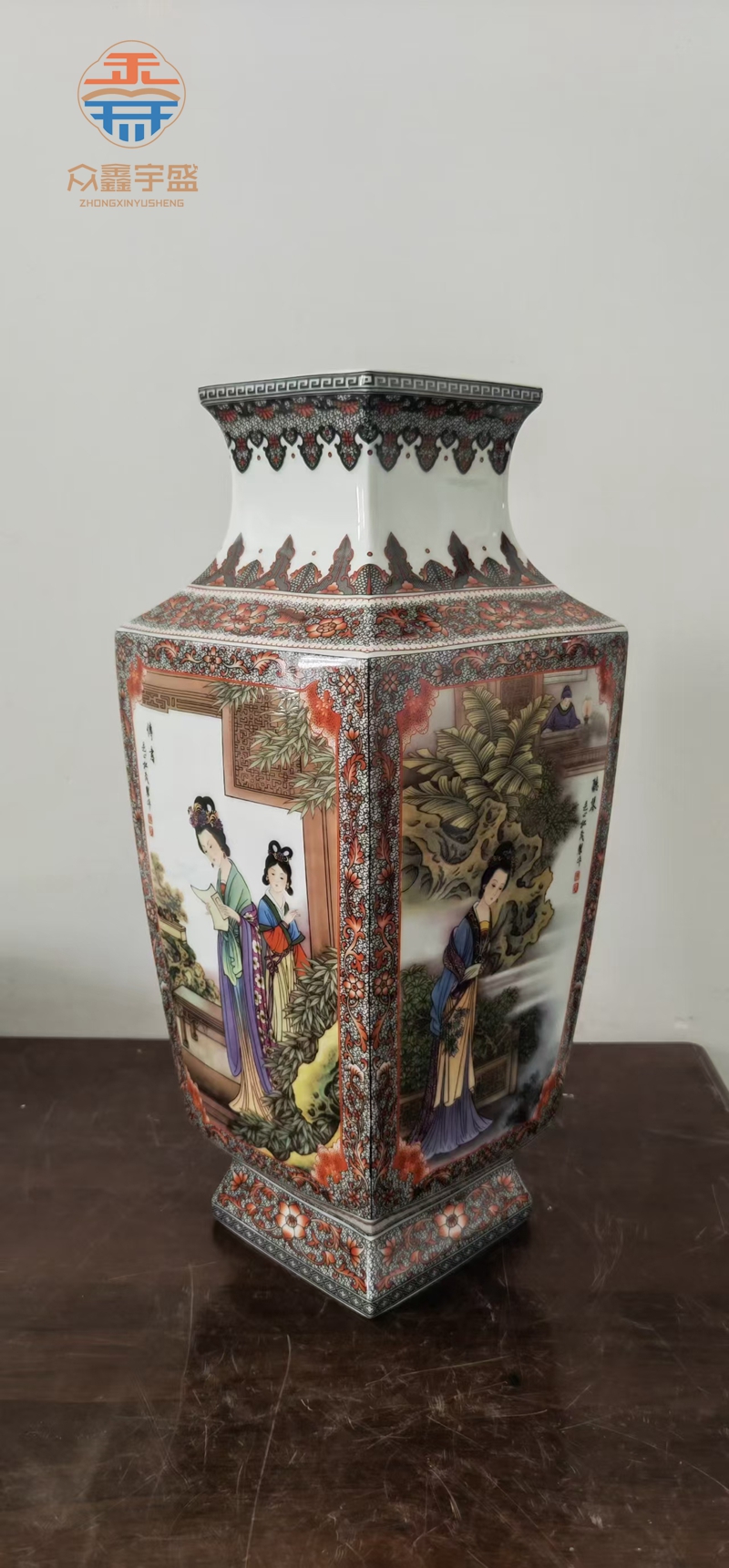 【藏品名称】:西厢记四方瓶 【藏品大师】:张松茂老师 【藏品规格】:高47cm 肚径约20 口径13