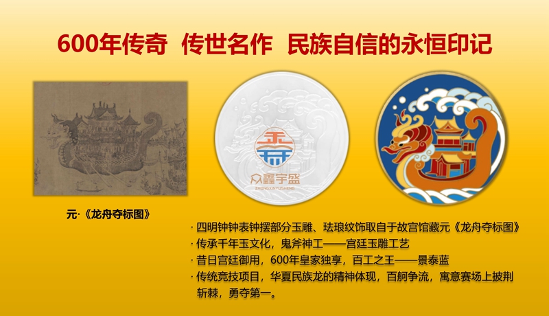 荣耀凯旋·辉煌时刻 采用古钟表修复、画珐琅、玉雕、花丝镶嵌、雕漆、鎏刻、宝石镶嵌七大中国非物质文化绝技工艺