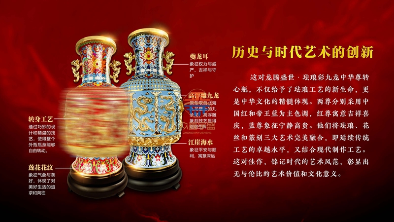 史上第一件可以“转动”的珐琅彩,开创中华千年新艺术形式的先河《龙腾盛世珐琅彩九龙中华尊》胎体升级;色彩升级;工艺升级!