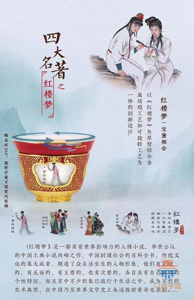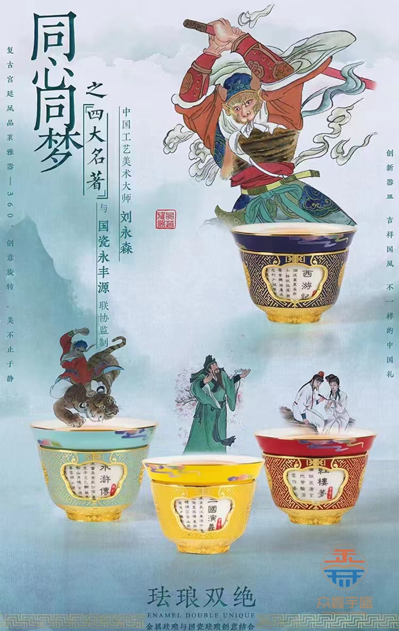 【产品名称】:《同心同梦》之四大名著匠心独创的旋转装置 【产品材质】:金属珐琅、陶瓷珐琅 【产品规格】:Ф80x60mm 【产品容量】:80ml(大约) 【产品价格】:1280元(单个) 360°任意旋转