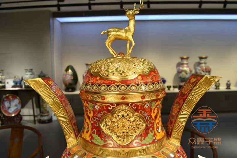【作品工艺】:铜胎掐丝珐琅 (作品规格:高56cm,最大直径52cm,足径36cm