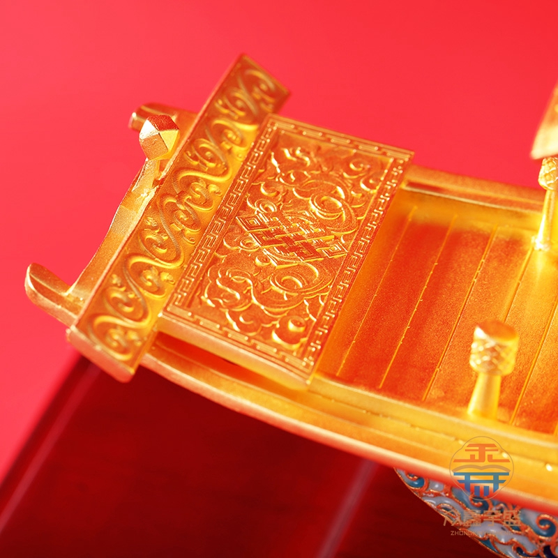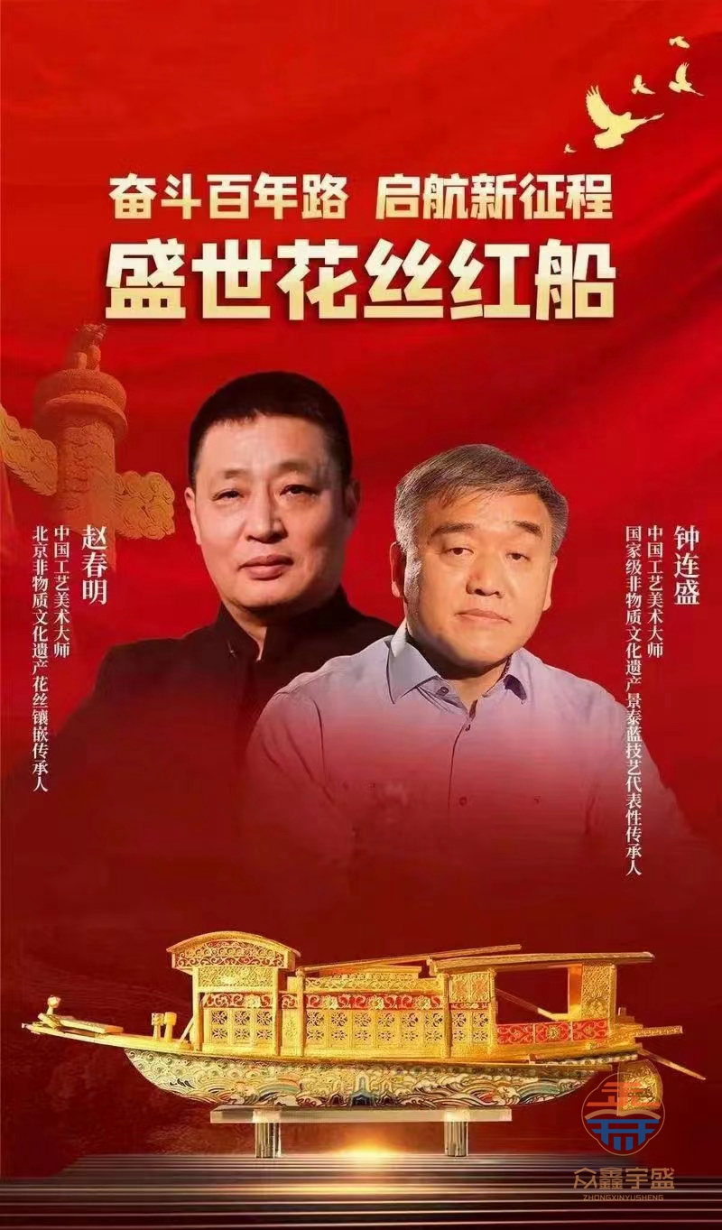【品 名】盛世花丝红船 【产品规格】70x70x280mm 【产品材质】足银800g 【设计督造】申文广 【创作大师】钟连盛、赵春明