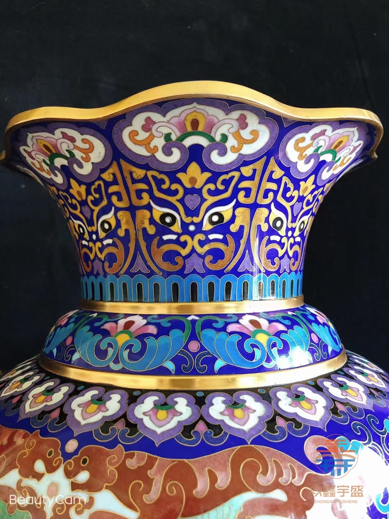 “岭上英姿”作为我国传统手工技艺景泰蓝的现代工艺品,是在业界享有盛誉的 “中国工艺美术大师”、景泰蓝泰斗戴嘉林先生,历时几年倾心打造的景泰蓝珍品,该作品庄重典雅、卓尔不凡,同时还具有丰富的文化内涵,是戴嘉林大师艺术生涯的经典力作。 ![]() 主体纹样采用现代写实的风格,将虎的形象表现的惟妙惟肖、生动传神,虎啸山林的勇猛之气呼之欲出,体现了现代景泰蓝制作技艺的精湛水平。“岭上英姿”以蓝色为基础底色,淡雅庄重,具有传统民族特色。 细节展示: