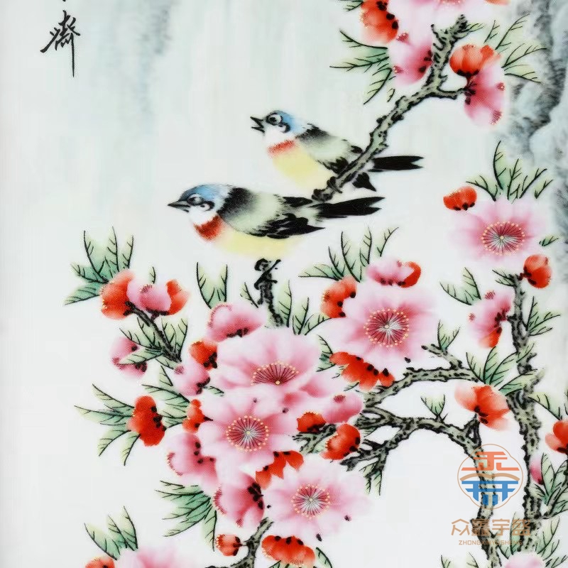 《四季盛景》四条屏珍藏,粉彩之作、水点桃花,由张松茂与徐亚凤夫妻二人设计创作而成。构图和谐,色彩丰富 两位老师创作的牡丹彩绘加水点桃花题材,主题鲜明,赏心悦目。