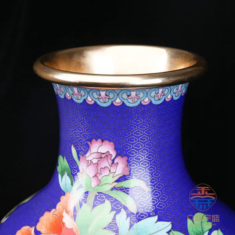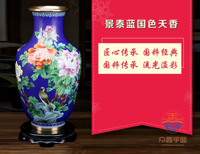 【藏品名称】:景泰蓝国色天香 掐丝如发 细腻流畅 百转千折 弯折彰显匠心之作 【藏品规格】:高约38CM 口径约13CM 底径约11CM 【限量发行】:999套 【创作大师】:戴嘉林 钟连盛