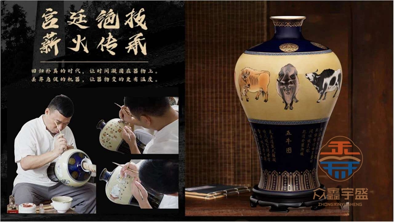 五牛齐聚,福禄寿喜财,故宫博物院指定官窑瓷器修复人阳士琦特选用中国十大传世名画,故宫博物院镇馆之宝《五牛图》为蓝本融合皇家制瓷技艺,国宝瓷画,创作出《五牛图》珐琅瓷。