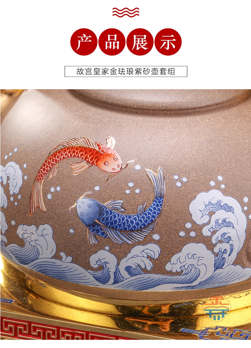 【藏品名称】:故宫皇家金珐琅紫砂壶套组 【出品单位】:北京故宫文化服务中心