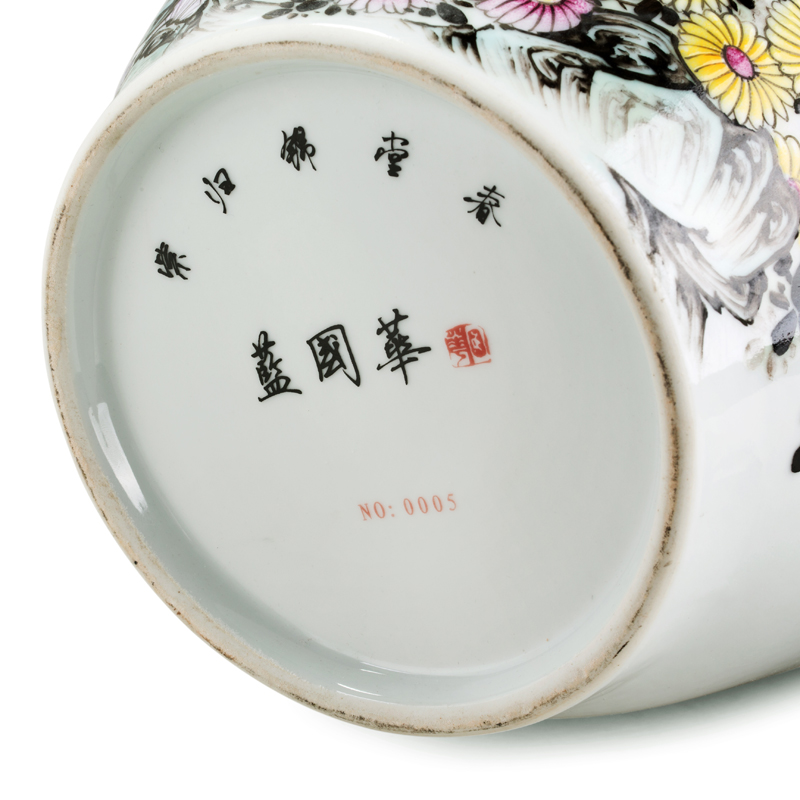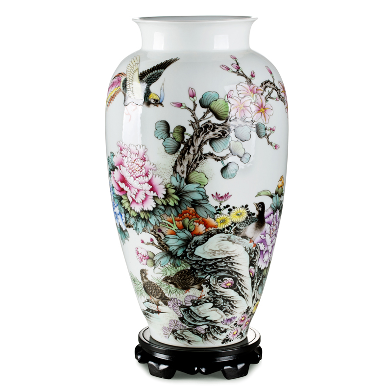【藏品名称】:蓝国华紫归锦堂春粉彩瓶 【藏品规格】:高约50cm 口径约19.5cm