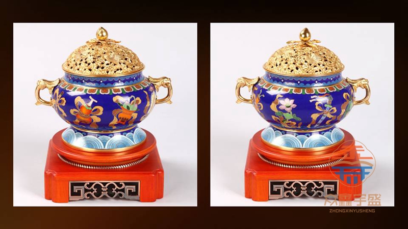 | 霍铁辉景泰蓝八宝香薰炉 造型精美、端庄秀丽 | |||