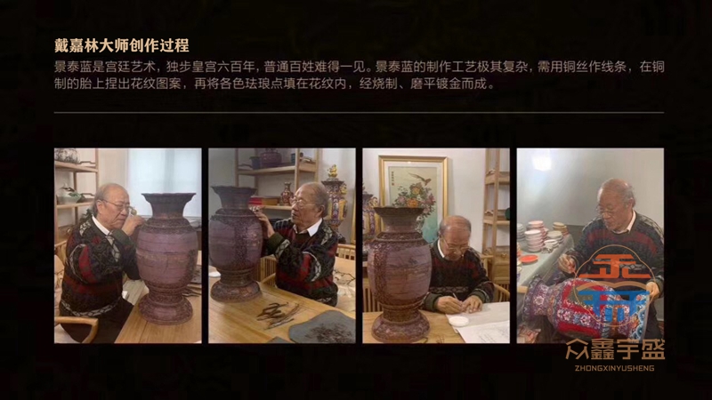 《五福临门》内画景泰蓝宝尊,器型采用故宫经典尊贵大器,高约70cm,纪念故宫建院600周年,集合掐丝珐琅、内画绘制、宝石镶嵌、錾刻、鎏金、铸造六大国宝工艺为一体,匠心巨制,融气度、高度、深度、力度于一身,彰显着作品的奢华尊贵,堪称国礼之典范!
