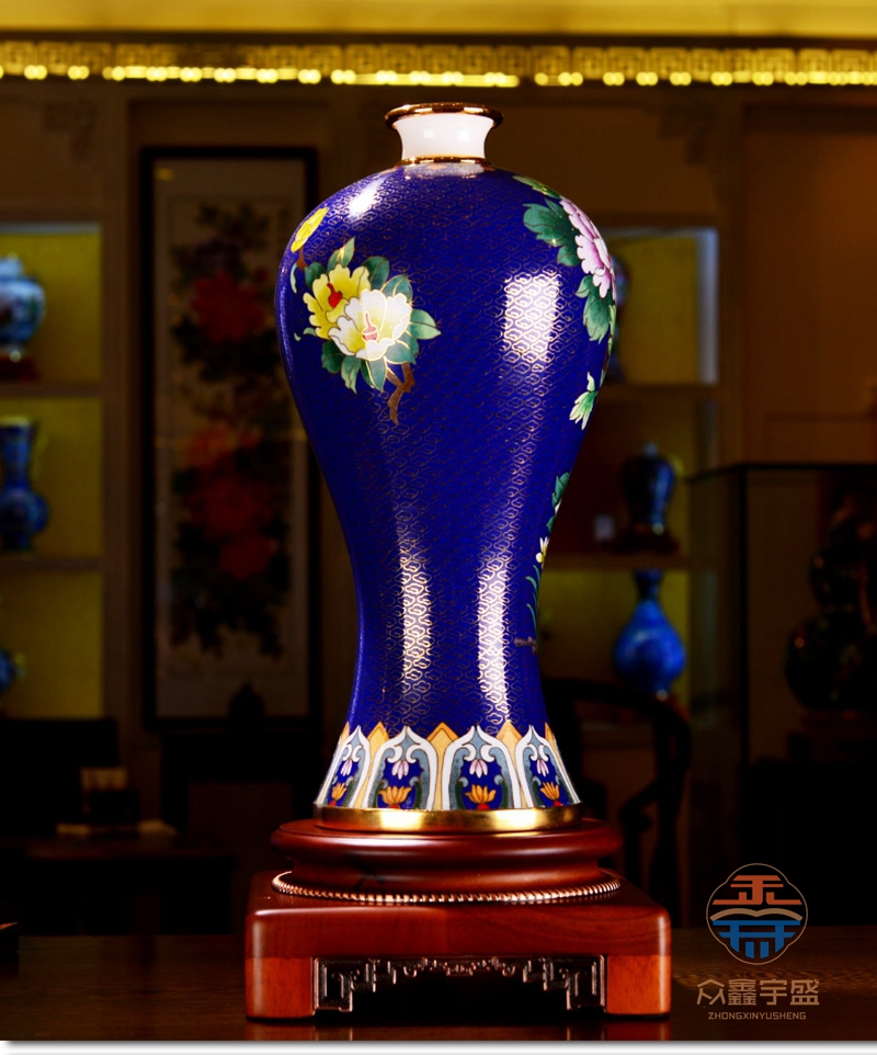 | 戴嘉林 景泰蓝镶玉地久天长富贵梅瓶 | |||