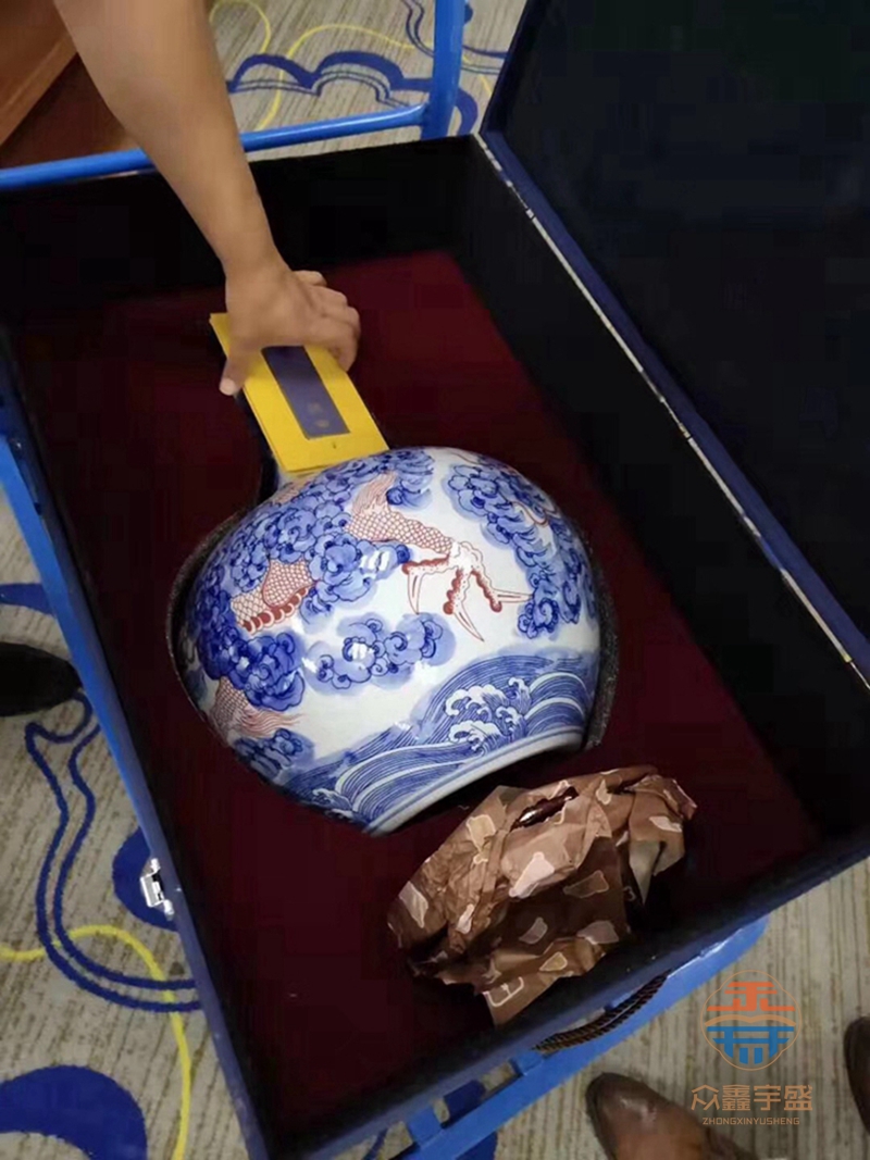 【藏品名称】:青花釉里红龙行天下天球瓶 宁勤征大师作品 青花釉里红,俗称“青花加紫”,是在青花间用釉里红加绘纹饰的一种瓷器装饰手法。青花釉里红是将元代发明的釉里红与青花装饰技法进行完美的结合。青花釉里红的出现,改变了青花瓷白底蓝花,清幽素雅,色调单一的状况,釉里红也是人们在瓷器上看到的红色。