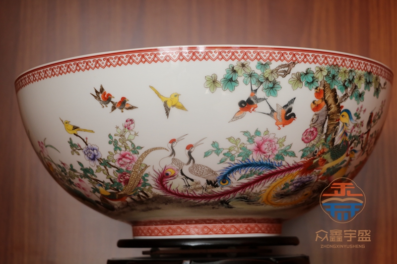 【藏品名称】:《龙凤呈祥》重工粉彩薄胎碗 【藏品创作】:张景寿、张为邦 【藏品规格】:高约14.5cm,口径约36cm