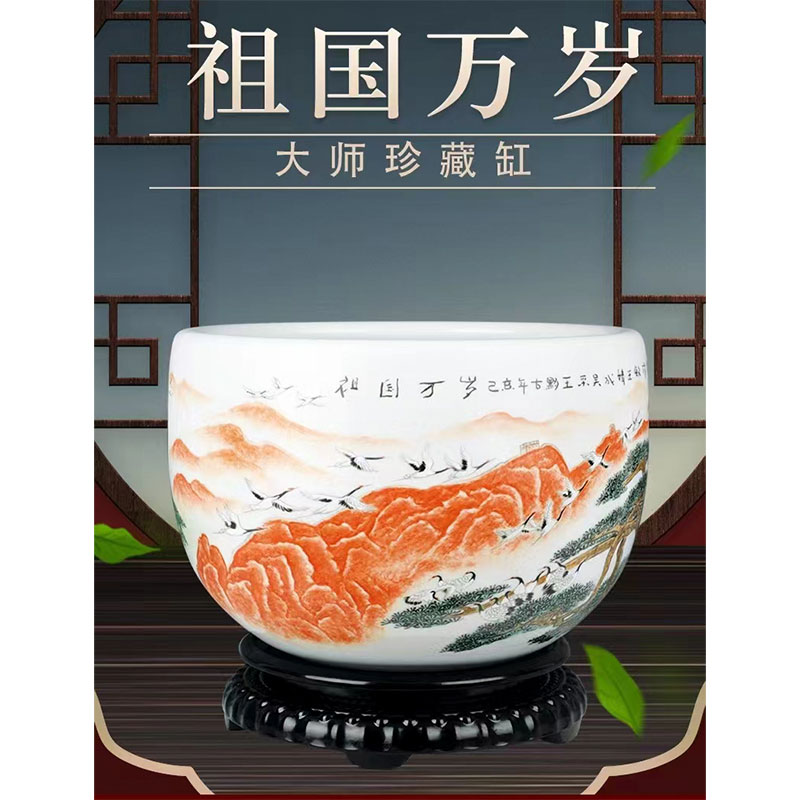 【作品名称】:《祖国万岁大师珍藏缸》 【设计制作】:王锡良、王采、王敏、吴成婧 【作品时间】:2019年 【作品尺寸】:高23cm,口直径33cm