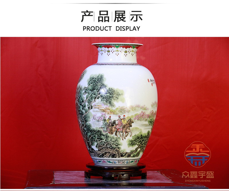 【作品名称】:三顾茅庐孔明出山粉彩瓷瓶 【作品材质】:陶瓷 ,江西景德镇 【作品规格】:高35cm 肚径22cm 口径15cm瓶底直径12.5cm 颈径11cm 【制作工艺】:粉彩雪景工艺