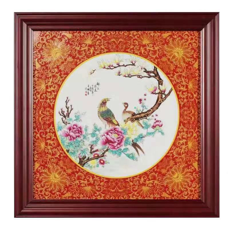 【作品名称】《四季花开》矾红描金珐琅彩瓷板画 【设计大师】王国喜(中国陶瓷艺术大师) 【作品规格】画框尺寸约 60cm*60cm 画芯尺寸约 50cm*50cm 【作品重量】作品总重约 16kg作品单重约 3kg 【作品配套】瓷板画*4,证书*1