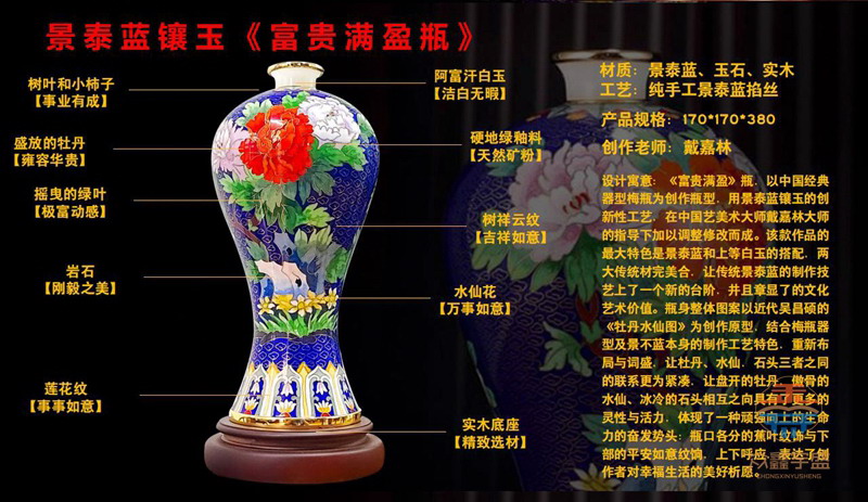 【藏品名称】:至尊收藏富贵满盈景泰蓝套组 【藏品规格】: 景泰蓝富贵满盈瓶 规格 高38cm 宽17cm 宝石红柚瓶 规格:高29cm 宽14cm
