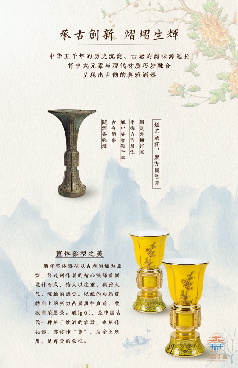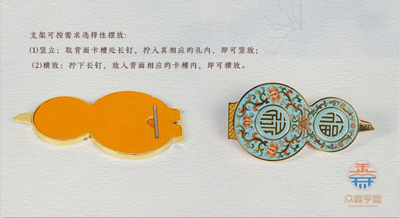 【藏品名称】:志同道合珐琅双绝转心酒杯 【藏品材质】:金属珐琅、陶瓷珐琅 【藏品规格】: 酒杯:高约8.5cm 最大直径约4.2cm 葫芦底座:高约17.3cm 最大直径约9.3cm 【藏品颜色】:西湖蓝 帝王黄 霁蓝(三个颜色可选,每套1980元) 【创作大师】:刘永森