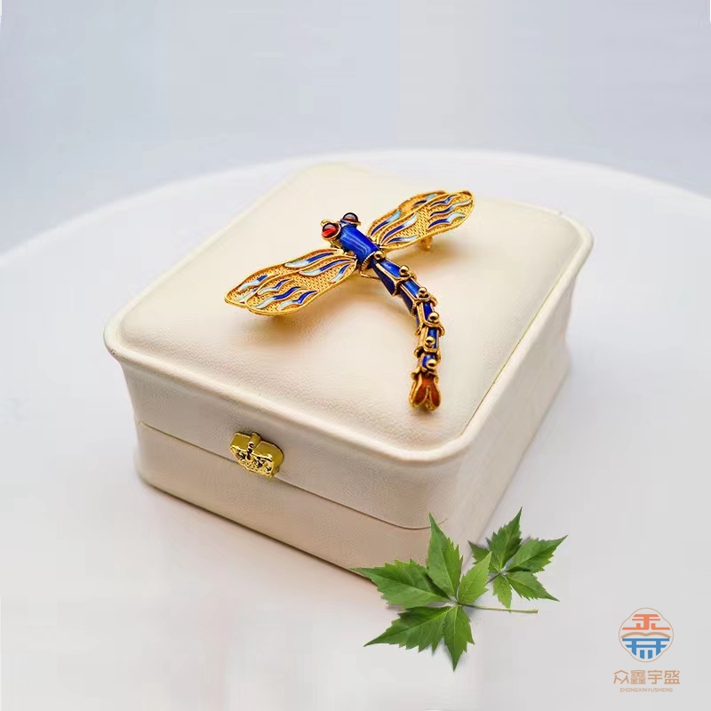 【作品名称】:蜻蜓胸针 《花丝蜻蜓》是以蜻蜓为原型创作而成。璀璨生辉的花丝镶嵌,在中国古代是一种身分与地位的象征,主要为皇室王公贵族所使用。花丝镶嵌工艺利用金、銀高度延展的特性,把金、銀加热后拉成细丝,再弯曲出花样焊接于器物表面,称为掐丝。若将细丝绞、扎成股,制成花丝加以编织 ,或层层盘绕堆叠,经焊接后连结成形,即为累丝。最后在累丝的器物上镶嵌宝石,就称为花丝鑲嵌。《花丝蜻蜓》做工精美,形态逼真,作品兼具两种用途既能能做吊坠又可以做胸针!