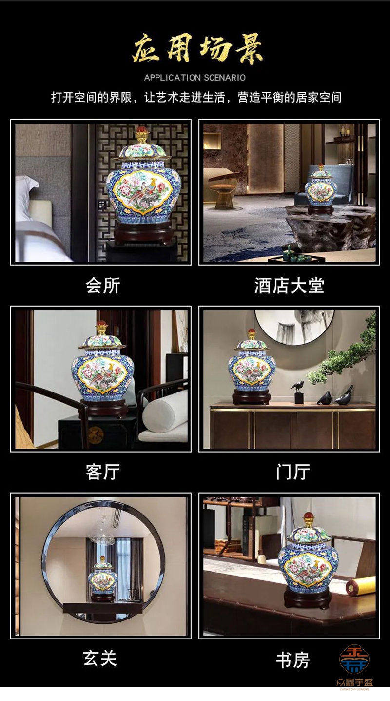 【藏品名称】:《锦绣前程》四季平安·将军罐 【藏品创作】:戴嘉林(中国工艺美术大师) 【藏品规格】:高38厘米宽32厘米 【工艺材质】:掐丝珐琅 紫铜 釉料 金 【全球限量】:199尊