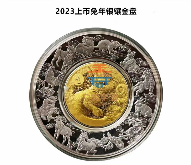 2023上币兔年银镶金盘 朱熙华大师作品 纯银80克+纯金0.3克 定价2980元