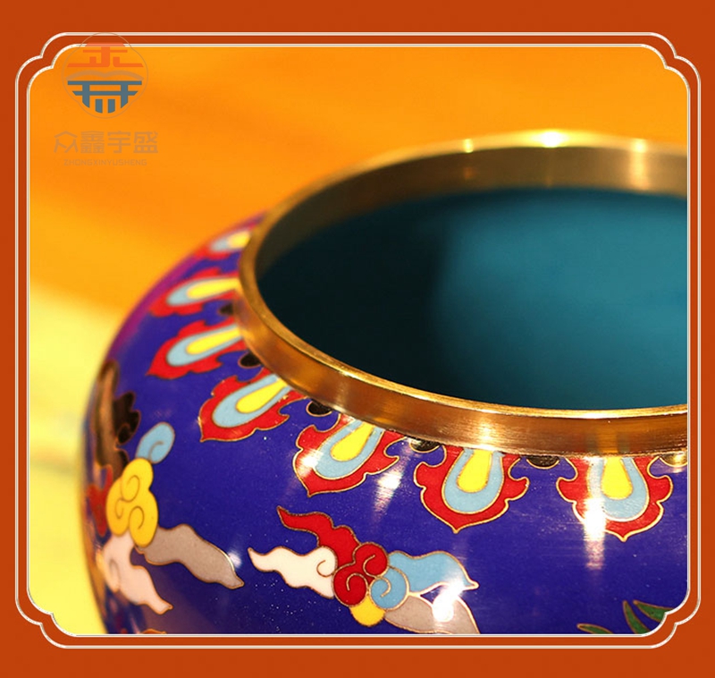 【藏品品名】: 《国器2019》大龙罐精华版 【藏品材质】: 紫铜、珐琅 【藏品工艺】: 铜胎掐丝珐琅、金属铸造