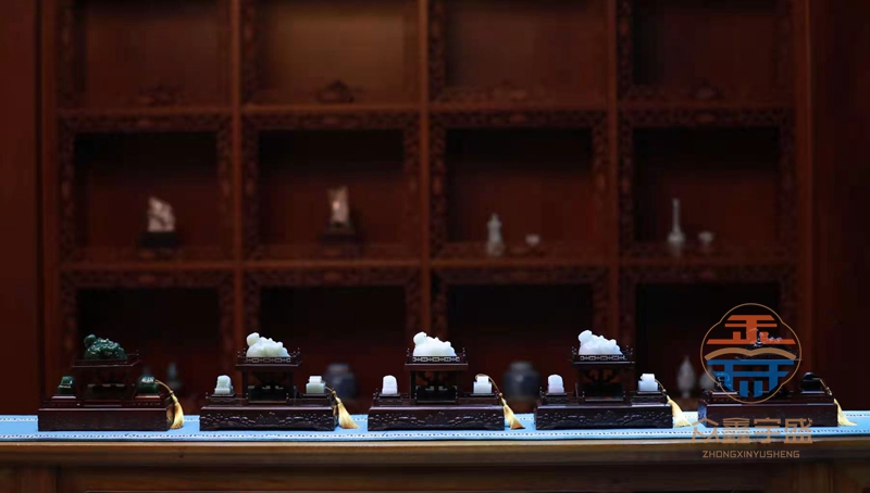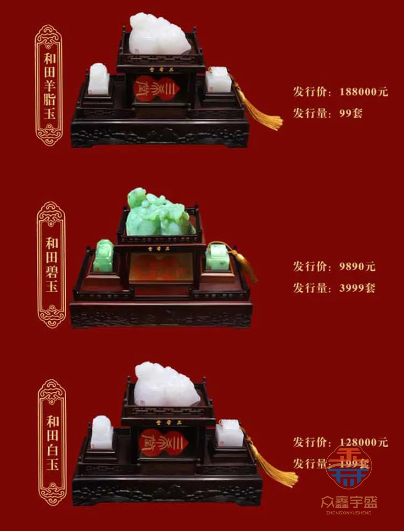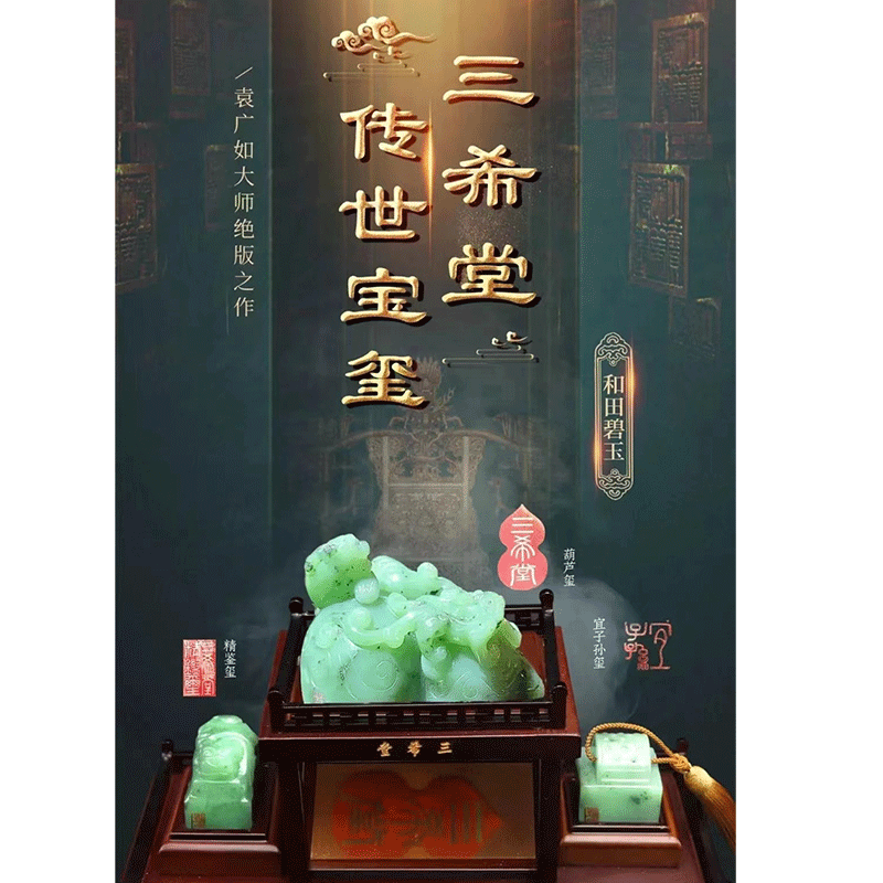 《三希堂宝玺传世双绝》作品原型为故宫三希堂宝玺,由三方玉玺组成,即葫芦形三希堂宝玺、三希堂精鉴玺和宜子孙玺。 《三希堂宝玺传世双绝》既体现了历史文化的丰富底蕴,也体现了宫廷玉玺的超凡价值,同时,它又融合了京派玉雕和袁氏玉器的艺术风格,可以说是宫廷玉雕文化继承和发扬的又一臻品力作。