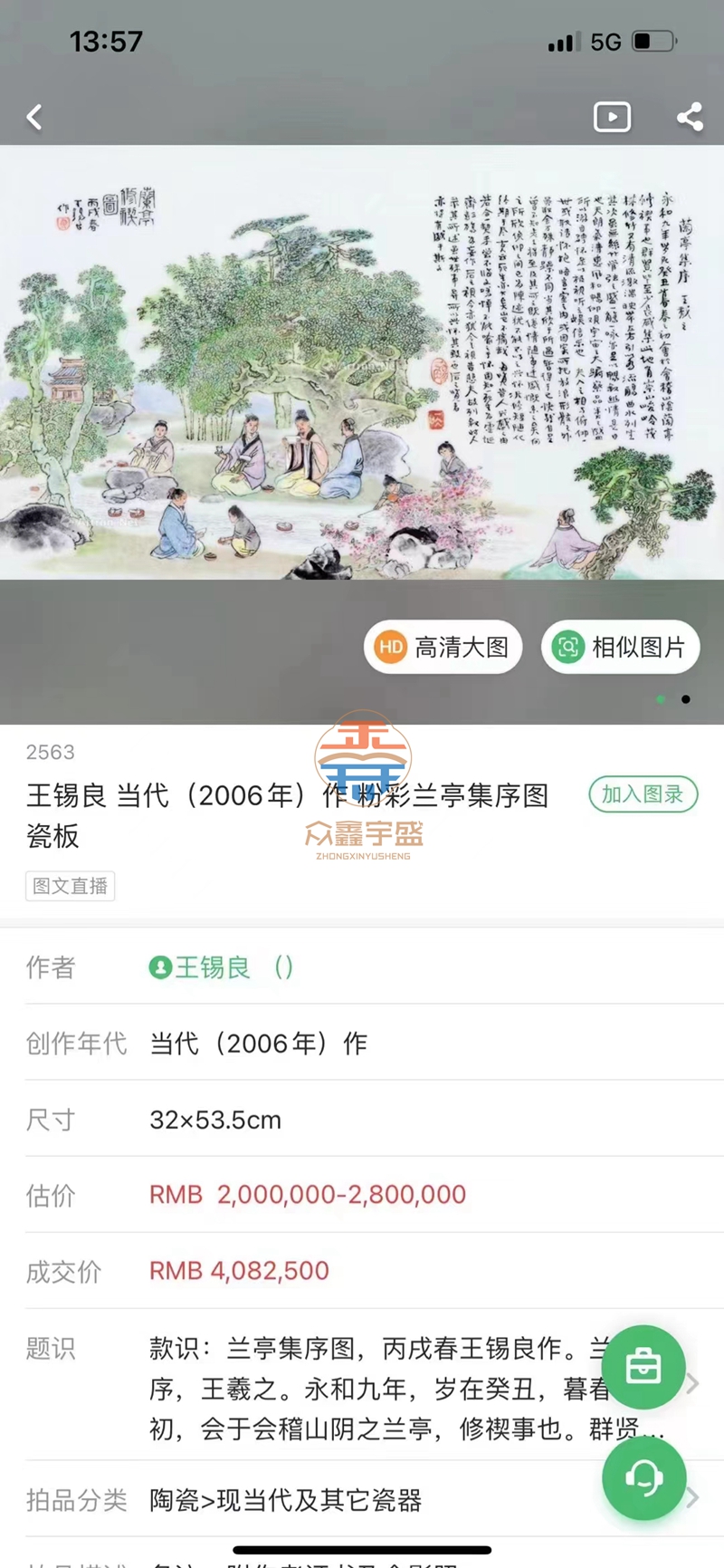 | 国瓷泰斗王锡良创作《兰亭集序》瓷板画 | |||