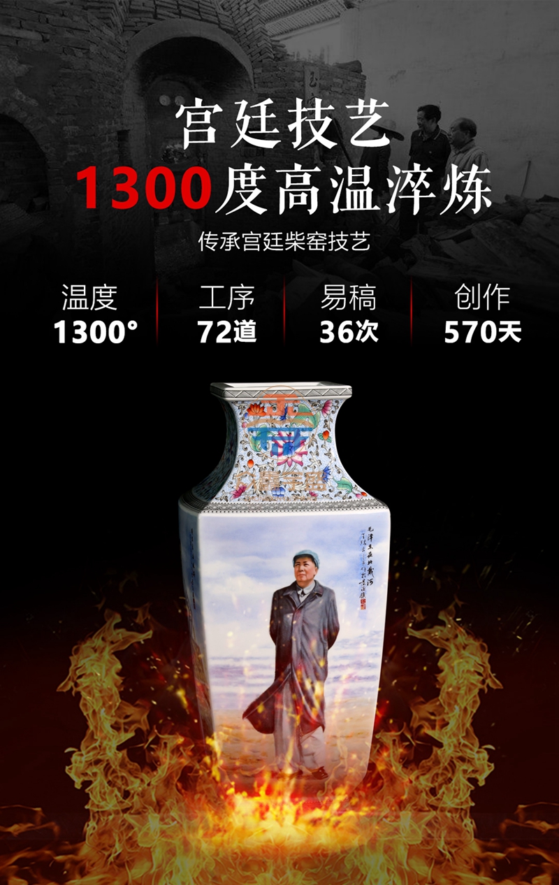 国瓷泰斗王锡良王采大师作品《四大伟人四方尊》粉彩瓷 以中国传统器型四方尊全景绘制展示国瓷魅力