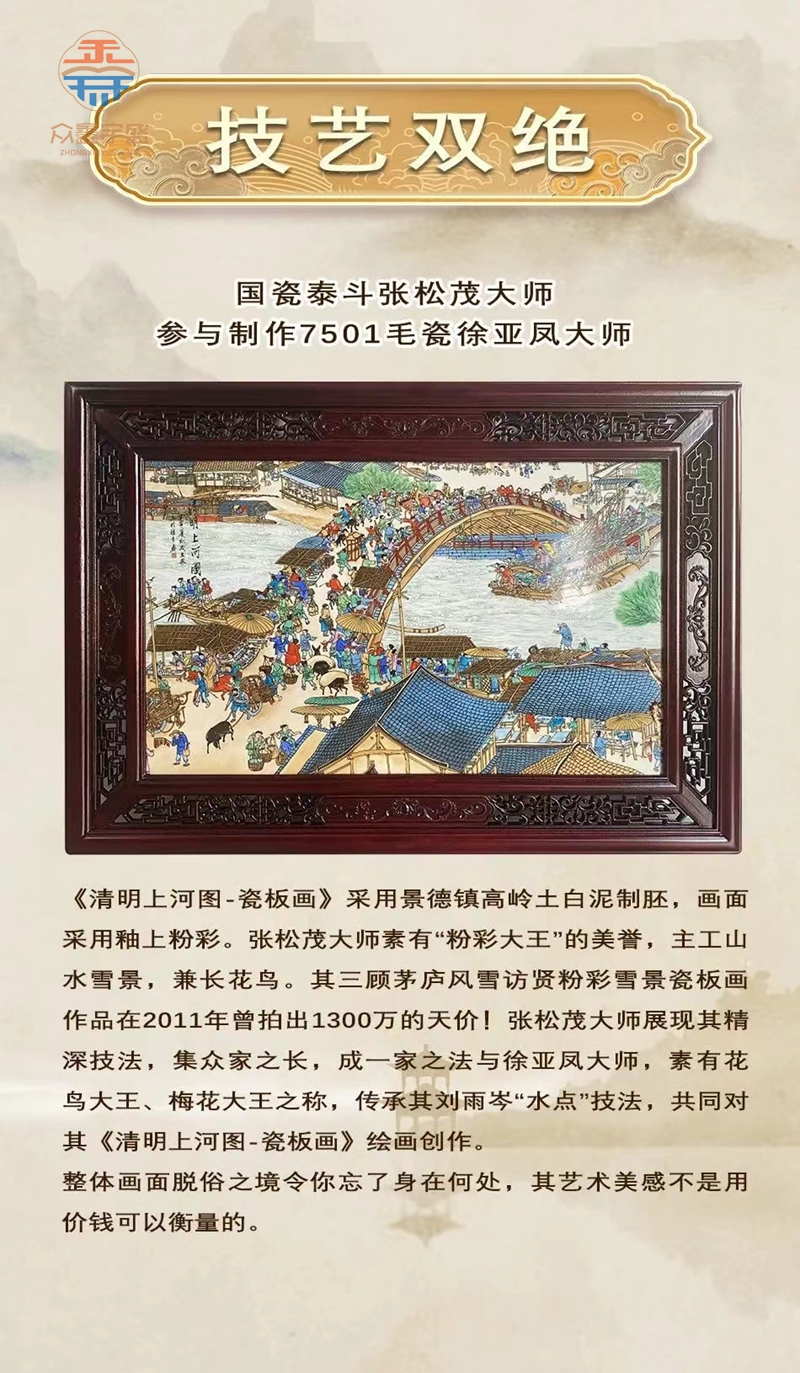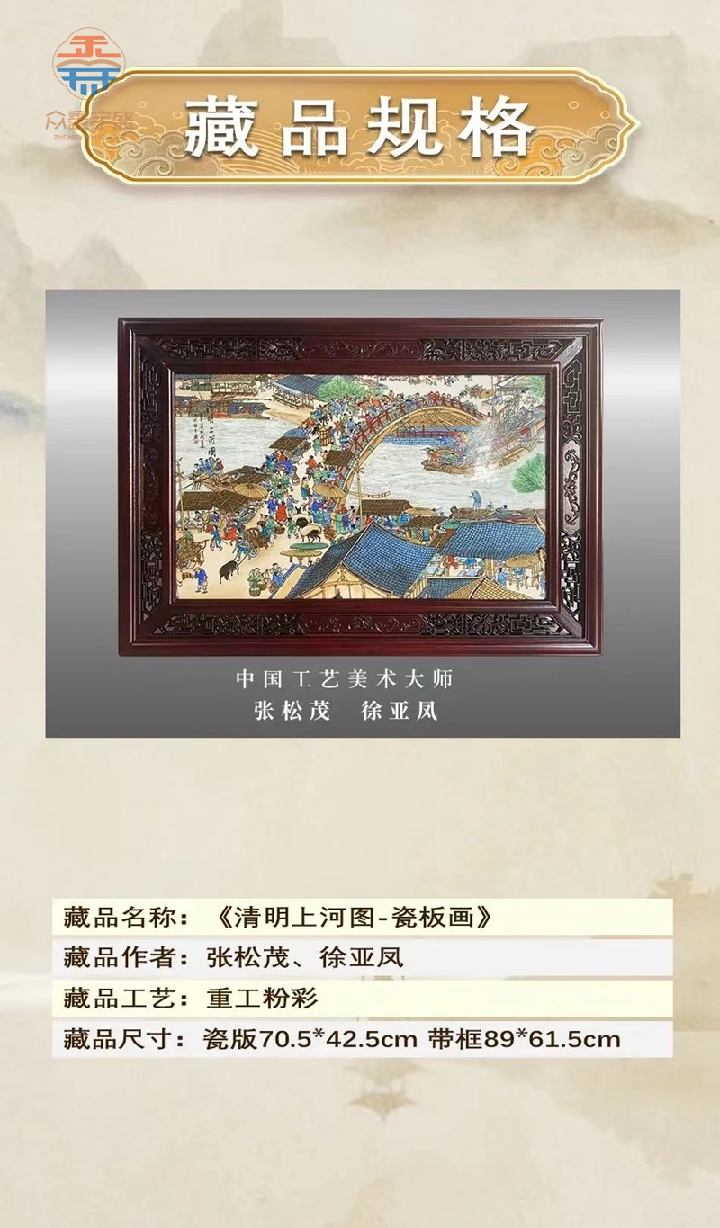 【藏品名称】:《清明上河图-瓷板画》 【藏品作者】:张松茂、徐亚凤 【藏品工艺】:重工粉彩