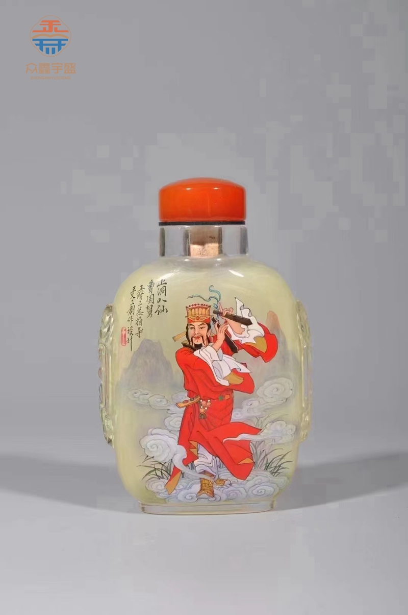 【藏品名称】:《八仙过海》内画鼻烟壶 【赠 品】:“富贵牡丹”内画水晶球