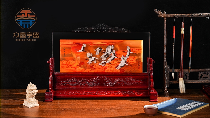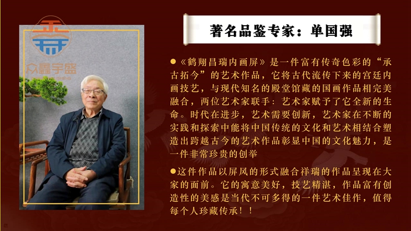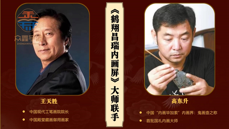 【作品品名】:《鹤翔昌瑞内画屏》 【制作工艺】:手绘内画 【创作大师】:当代工笔画殿堂大师王天胜 京派内画第一人高东升 【作品材质】:水晶内画天然实木底座