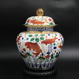 戴嘉林大师最新创作景泰蓝《和合有余》瓶 独具艺术特色
