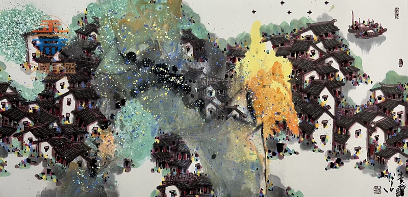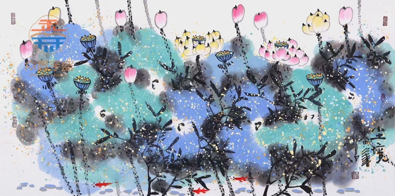 中国画是在中国这块古老而神奇的土地上生长起来的艺术,蕴涵着中国人的信仰、智慧、哲学思想、人生感悟、审美习惯。贾绍昌先生的彩墨江南水乡,其意境典雅蕴藉,充满了东方美。山水画在色彩浸染,光墨变幻中表现云卷云舒、流水淙淙、山峦起伏的动势,虚实相生、光色流转的画境中山体与背景空间浑然一体,以山的伟岸表现生命的坚强,以背景寓意无边宇宙,以平和的形态勾勒世事的百态,以艺术之心解读生活,注重“师造化”,做到天人合一,与山传神的风范。 贾绍昌先生笔下傲然展蕊的荷花超凡脱俗,荷花的丰富美学意蕴,涵养着东方人的崇德,“小荷才露尖尖角”“朝晖晶莹珍珠露”,意在笔先,落墨即形,尽在情中,印刻着他穷究脉理、探索荷神韵的匠心精神,将人与自然、心灵与人文之美融汇于彩墨荷花之中,具有很强的现代审美效果,无言之美凸显在我们眼前。