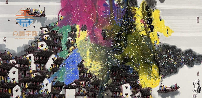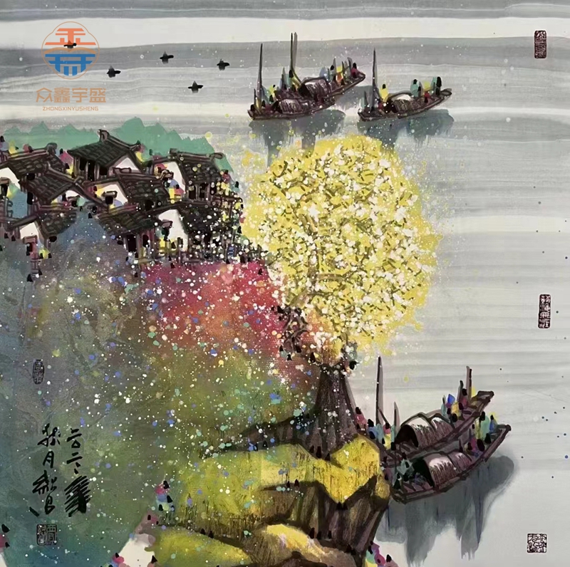 合影视频证书都有,所标价格为议价,不是实际价格,每幅作品价格均不相同,作品支持定制,详情请咨询客服!!! 贾绍昌,1972年出生于河北馆陶。漆画家、新彩墨画家。 2012奥林匹克美术大会金质奖章获得者。2022年被文化部评为全国最具收藏价值的艺术家。国家一级美术师、中国美术家协会会员、北京陈半丁艺术研究会副会长、中国传统文化发展委员会副主席、北京城市学院工艺美术系特聘教授等。 1972年出生于河北馆陶。漆画家、新彩墨画家。 2012奥林匹克美术大会金质奖章获得者。 2022年被文化部评为全国最具收藏价值的艺术家。 国家一级美术师、中国美术家协会会员、北京陈半丁艺术研究会副会长、中国传统文化发展委员会副主席、北京城市学院工艺美术系特聘教授等。 ![]() 丹青不渝 韶光不负 贾绍昌先生漆画艺术多年,笔耕不辍,他勤于探索与创新,在继承中国传统绘画中,别具一格旷古未有创作出彩墨作品,形成了自己独特的笔墨语言,泼墨泼彩,具象与抽象相结合,不拘陈法,他“以色代墨”,“色墨混用”,取得了昂霄耸壑效果。欣赏贾绍昌先生的彩墨佳作,绚丽多彩,而笔落老硬,笔酣墨宝,既有强烈的视觉冲击,又使人产生深沉的情感共鸣,以卓越的新彩墨标新立异成为这一题材的先行者! ![]() 贾绍昌彩墨中国画作品 笔墨即为美,即为空间,即为自然的同形。贾绍昌先生的新彩墨作品,点线面综合交织,彩墨挥洒有致的画面中氤氲一股“和合”之气,厚重的人文底蕴,气势恢宏,具有相当大气的瞻瞩效果。贾绍昌先生的彩墨画表现形式丰富多元化,传承和发扬中国画的精髓,古为今用,将时代的烙印、民族的精神、个性的语言、国际化的意识溶入他的绘画创作当中,与世俱进,作品内涵敦厚,气势磅礴,有一种自由奔放间不偏离法度和秩序衡感“和”,他追求中国传统审美中的大象无形境界。 ![]() 中国画是在中国这块古老而神奇的土地上生长起来的艺术,蕴涵着中国人的信仰、智慧、哲学思想、人生感悟、审美习惯。贾绍昌先生的彩墨江南水乡,其意境典雅蕴藉,充满了东方美。山水画在色彩浸染,光墨变幻中表现云卷云舒、流水淙淙、山峦起伏的动势,虚实相生、光色流转的画境中山体与背景空间浑然一体,以山的伟岸表现生命的坚强,以背景寓意无边宇宙,以平和的形态勾勒世事的百态,以艺术之心解读生活,注重“师造化”,做到天人合一,与山传神的风范。 贾绍昌先生笔下傲然展蕊的荷花超凡脱俗,荷花的丰富美学意蕴,涵养着东方人的崇德,“小荷才露尖尖角”“朝晖晶莹珍珠露”,意在笔先,落墨即形,尽在情中,印刻着他穷究脉理、探索荷神韵的匠心精神,将人与自然、心灵与人文之美融汇于彩墨荷花之中,具有很强的现代审美效果,无言之美凸显在我们眼前。