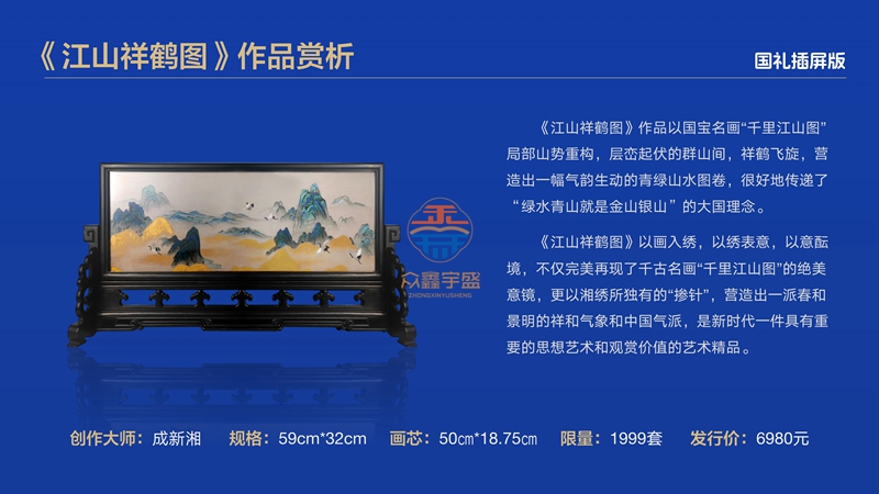 【作品规格】:国礼插屏版 规格:59cm*32cm画芯:50cm*18.75cm 限量:1999套